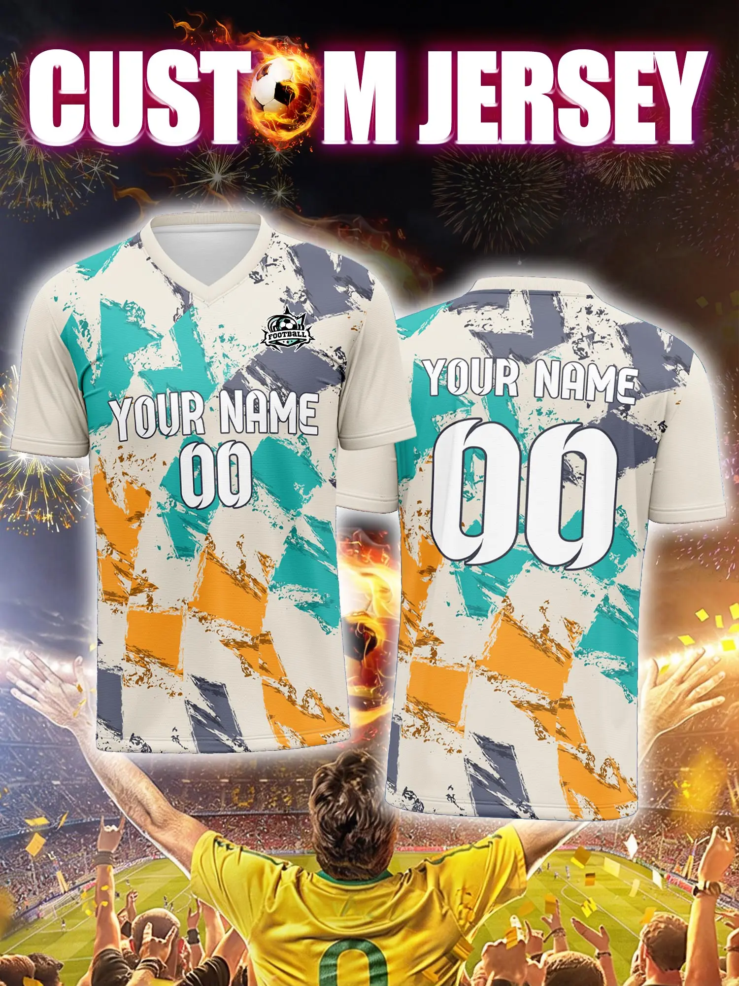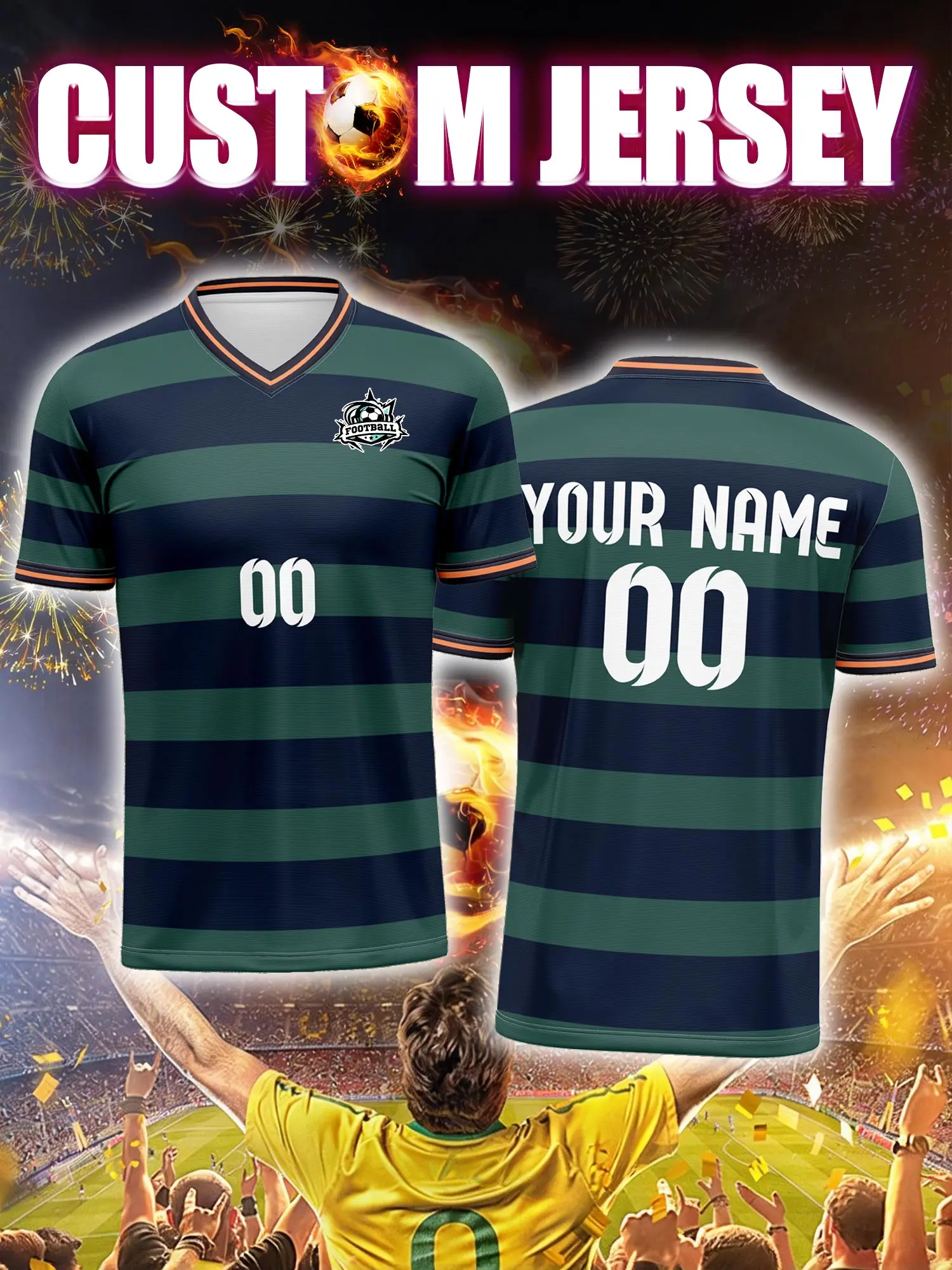 Maglia da calcio personalizzata con immagine, numero e nome personalizzati, abbigliamento casual da tifoso per l'uso quotidiano.