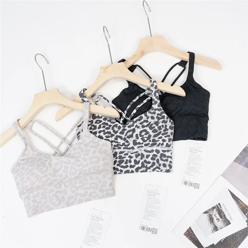 Reggiseno Sportivo con Stampa Leopardata, Schiena Incrociata, Antiurto, Asciugatura Rapida, Top da Yoga