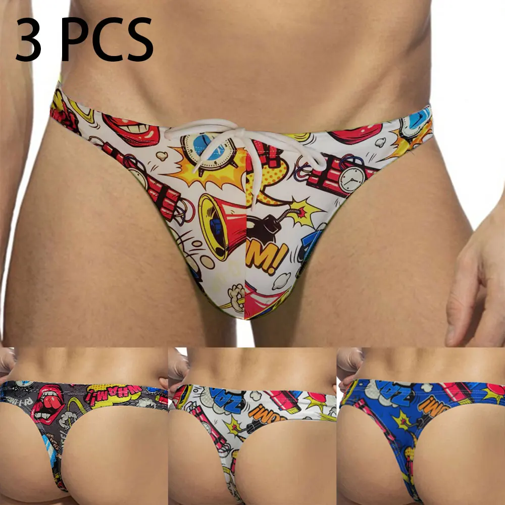 Costume da bagno da uomo con stampa cartoon pop art a vita bassa, bikini sexy, perizoma, slip da spiaggia, mini costume da bagno, costume da bagno