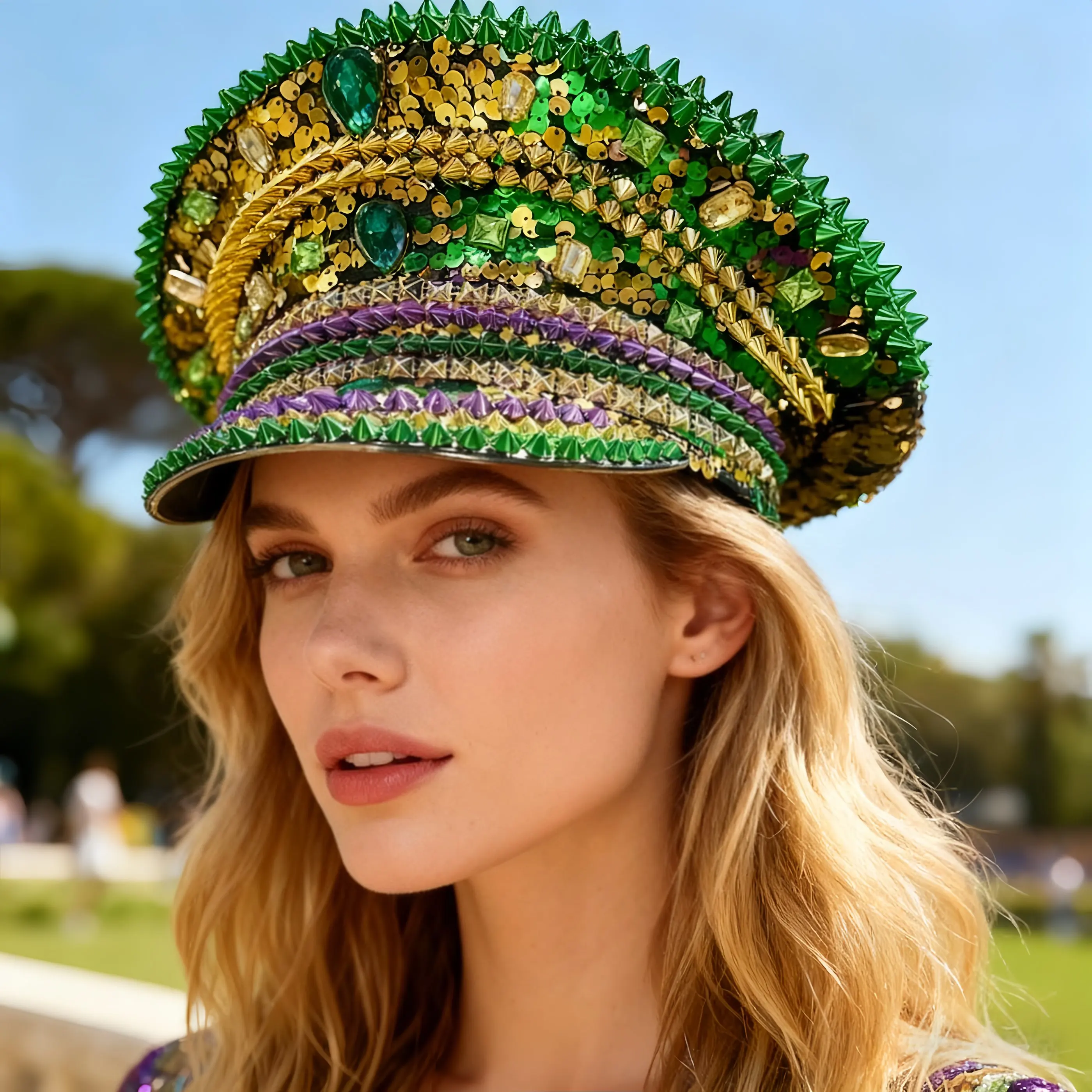 HongLuan Disco Glitter Mardi Gras Capitano Cappelli Strass per Donna, Costume di Carnevale Cappello Adulto e Cosplay Accessori Femminili