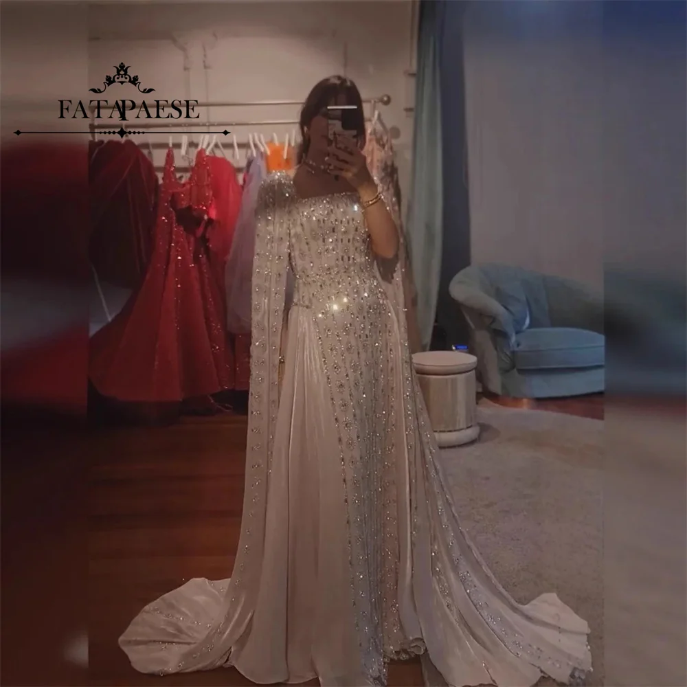 FATAPAESE Abiti da sera con mantella Dubai arabo saudita di lusso Abiti da ballo con perline di cristallo pieno per abiti da cerimonia nuziale affascinanti per feste