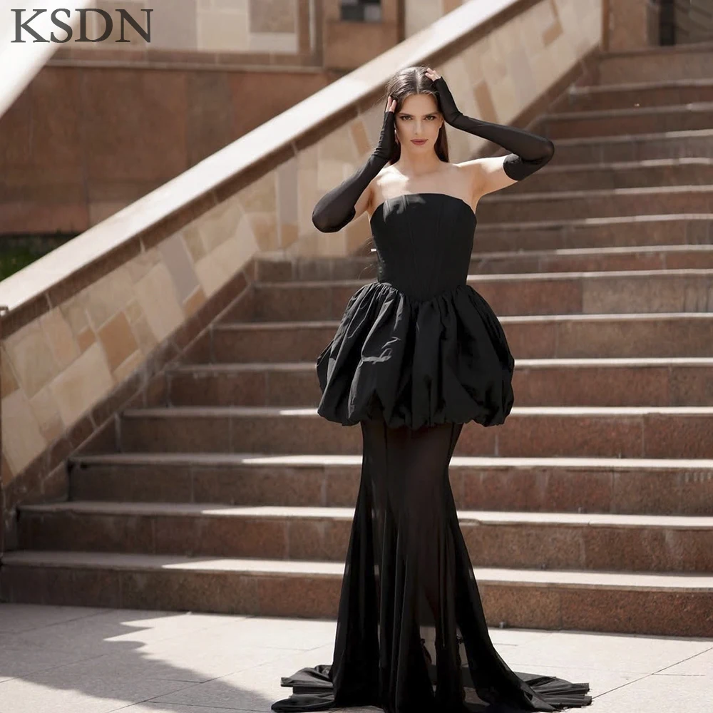 KSDN eleganti abiti da sera neri formali senza spalline cappella treno illusione abiti senza maniche abito da celebrità di alta qualità