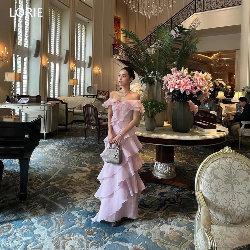 LORIE Affascinante abito da sera in organza rosa con spalle scoperte, abiti da festa con drappeggiature, abiti da ballo asimmetrici da fata, personalizzabili