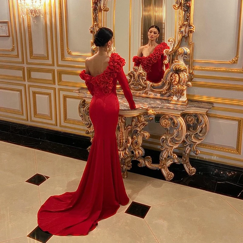 Thinyfull sexy sirena abiti da sera da ballo maniche lunghe fiore Arabia Saudita abito da festa donne abiti da ballo da cocktail personalizzati