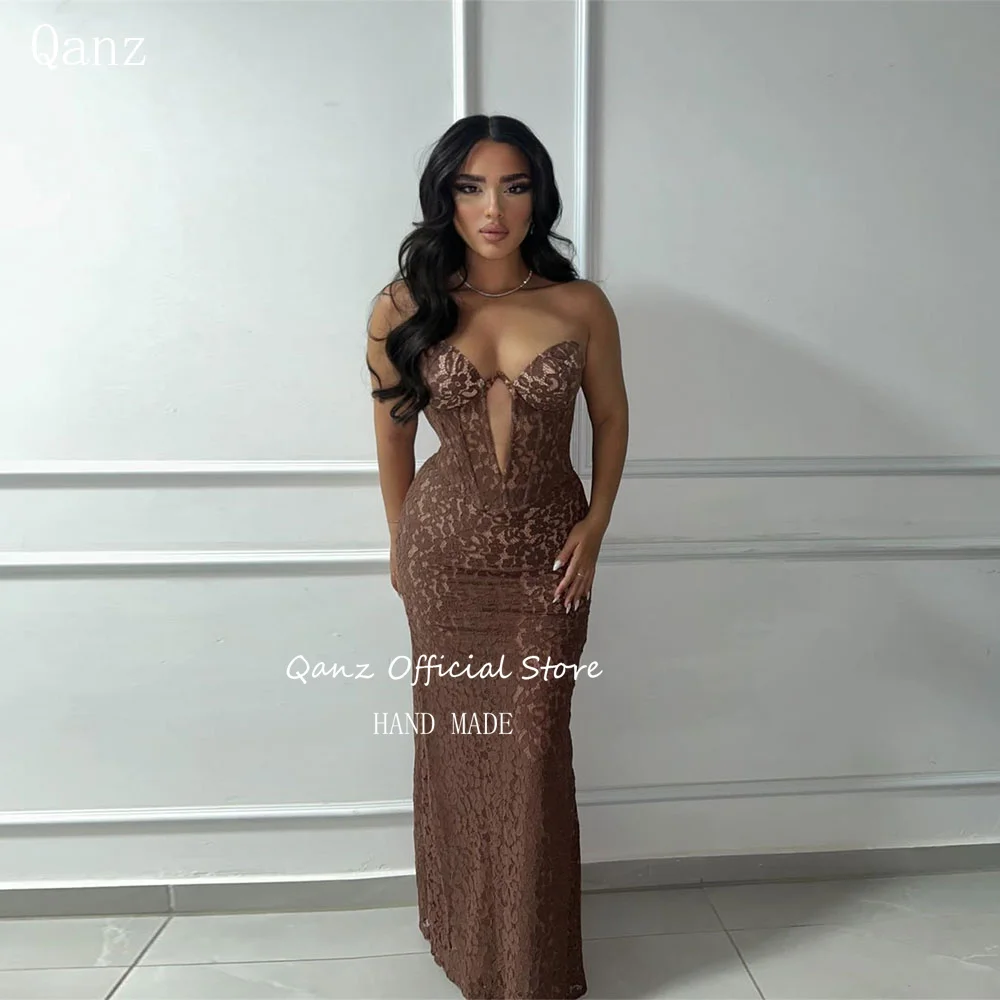 Abito da ballo Qanz marrone con applicazioni in pizzo, modello a sirena, scollo a cuore, corsetto, abito da invitata a matrimonio, sexy senza schienale, Vestidos De Fiesta personalizzabili