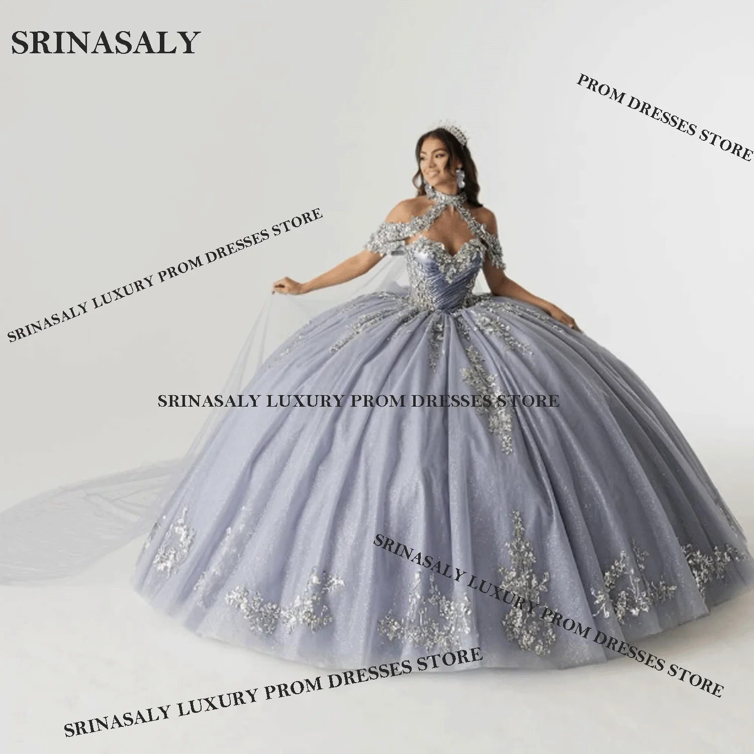 Abito da Quinceañera con Applicazioni Principesche, Fiocco e Spalle Scoperte, Elegante Vestito da Ballo per Festa di Compleanno Sweet 16, Personalizzabile, Abiti da Cerimonia