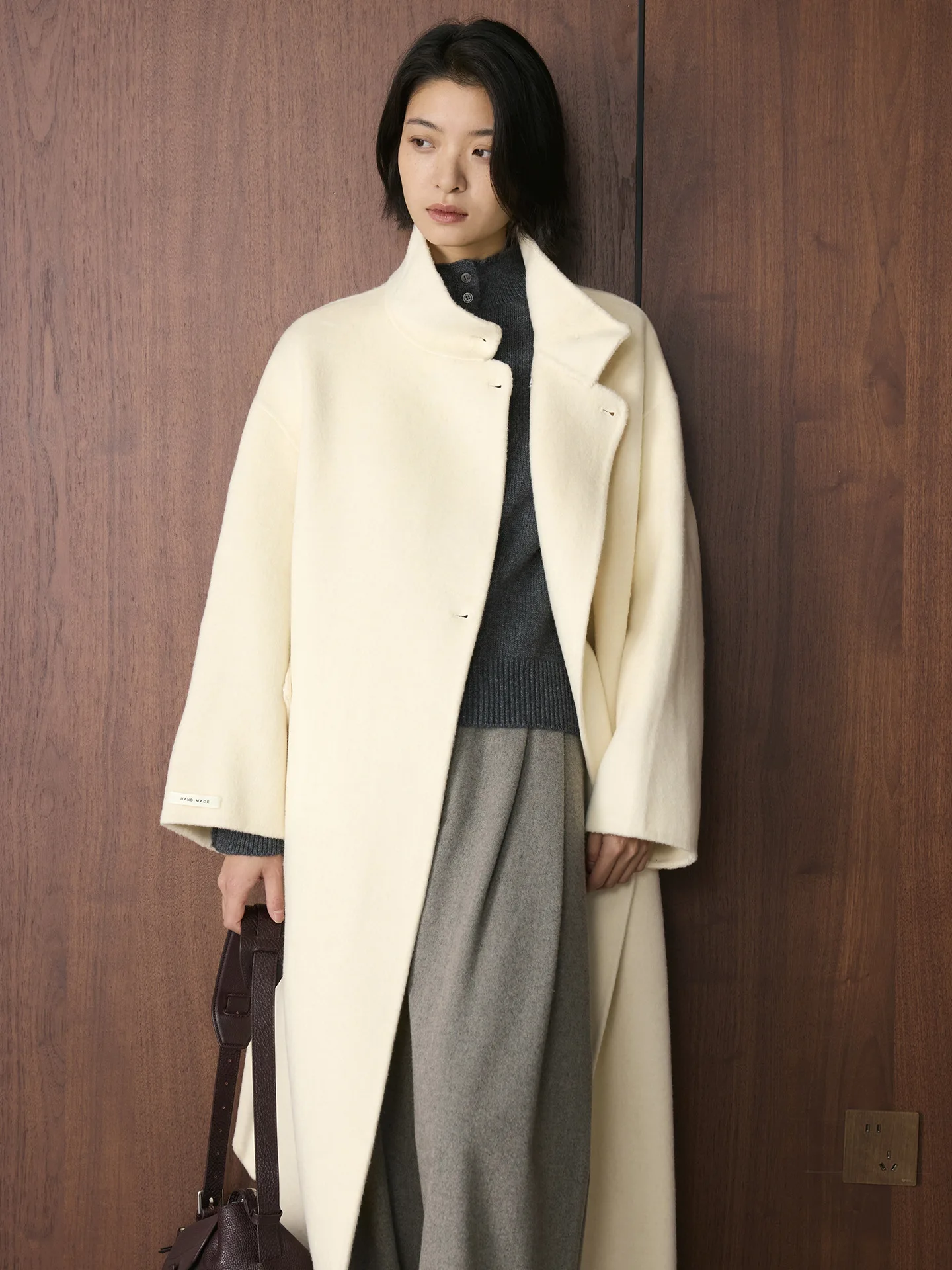 SEIZPROJECTS Cappotto lungo classico ed elegante da donna in cashmere con cintura e tasche