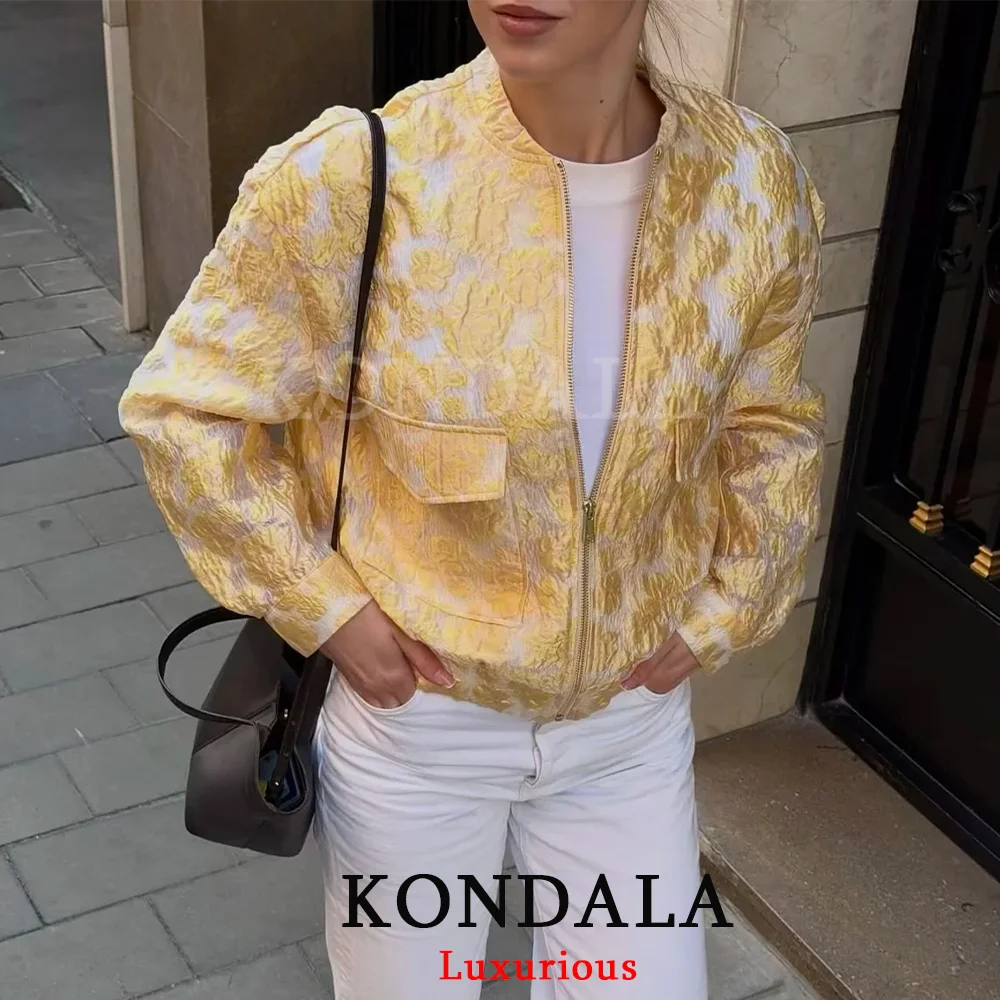 KONDALA Giacca Bomber Gialla da Donna Casual Chic con Cerniera e Tasche, Manica Lunga, Moda Primavera Estate 2026