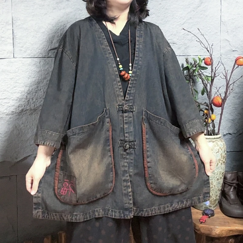Giacca di jeans jolly allentata da donna ricamata originale primavera e autunno vecchia giacca per il tempo libero comoda tasca monopetto Coa
