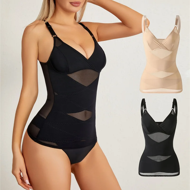 Donne Cross Tummy Control Shapewear Sexy Mesh traspirante Slip in vita Body Seno sottile Coppa Shaper Butt Lifter Corpo liscio