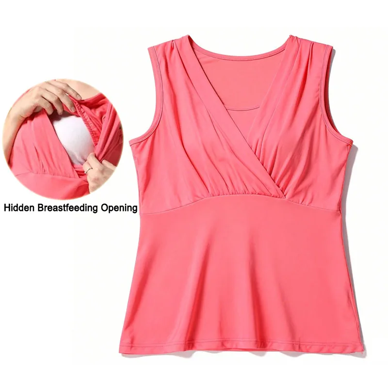 JOYNCLEON Gilet per la cura della maternità alla moda Camicia elastica senza maniche con scollo a V estivo per un'allattamento al seno facile, materiale delicato sulla pelle