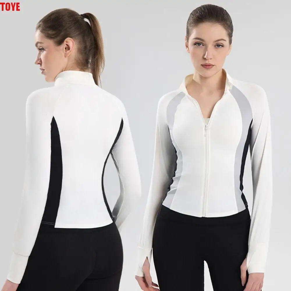 Top di protezione solare in seta di ghiaccio Giacca da yoga anti-UV con blocco colore da donna Cappotto a maniche lunghe Stand Up Collor Felpe ad asciugatura rapida