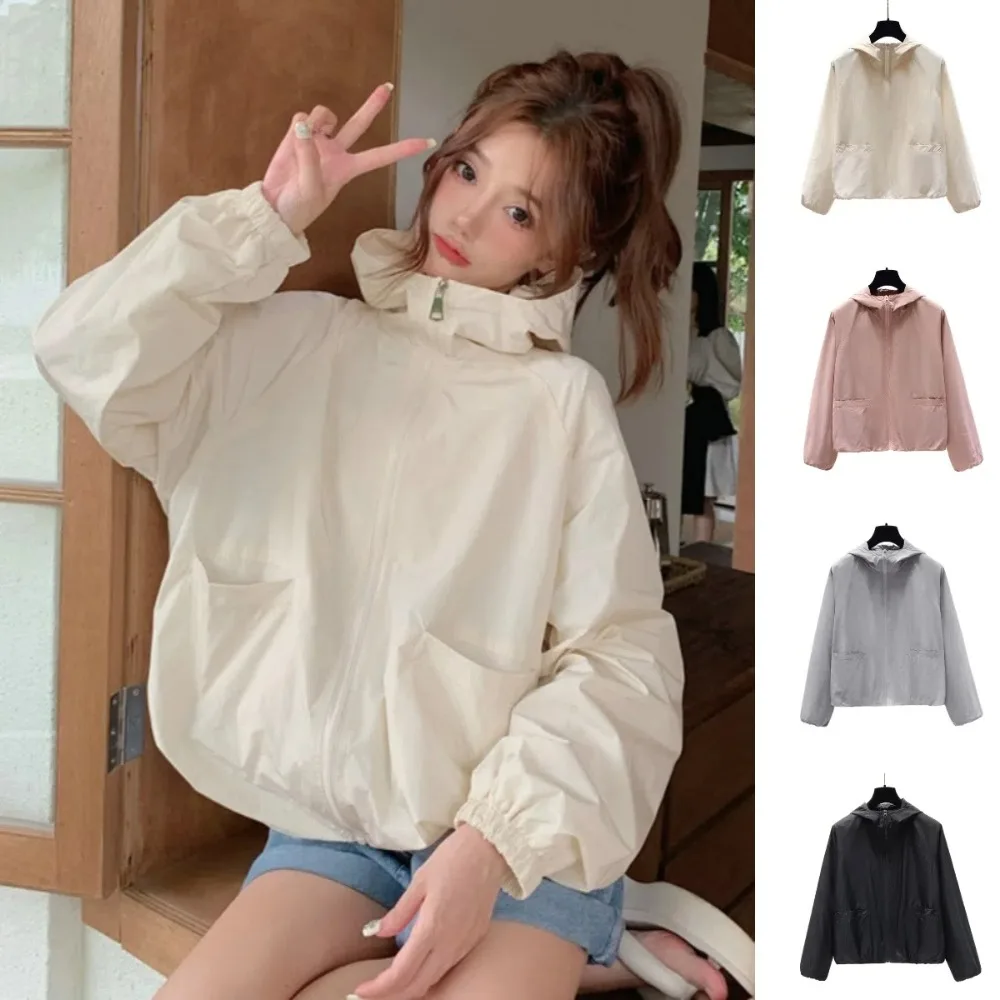 Cappotto per protezione solare allentato moda Donna Tinta unita Antivento Top protettivi per il sole Abbigliamento ad asciugatura rapida Giacca con cappuccio Primavera Autunno