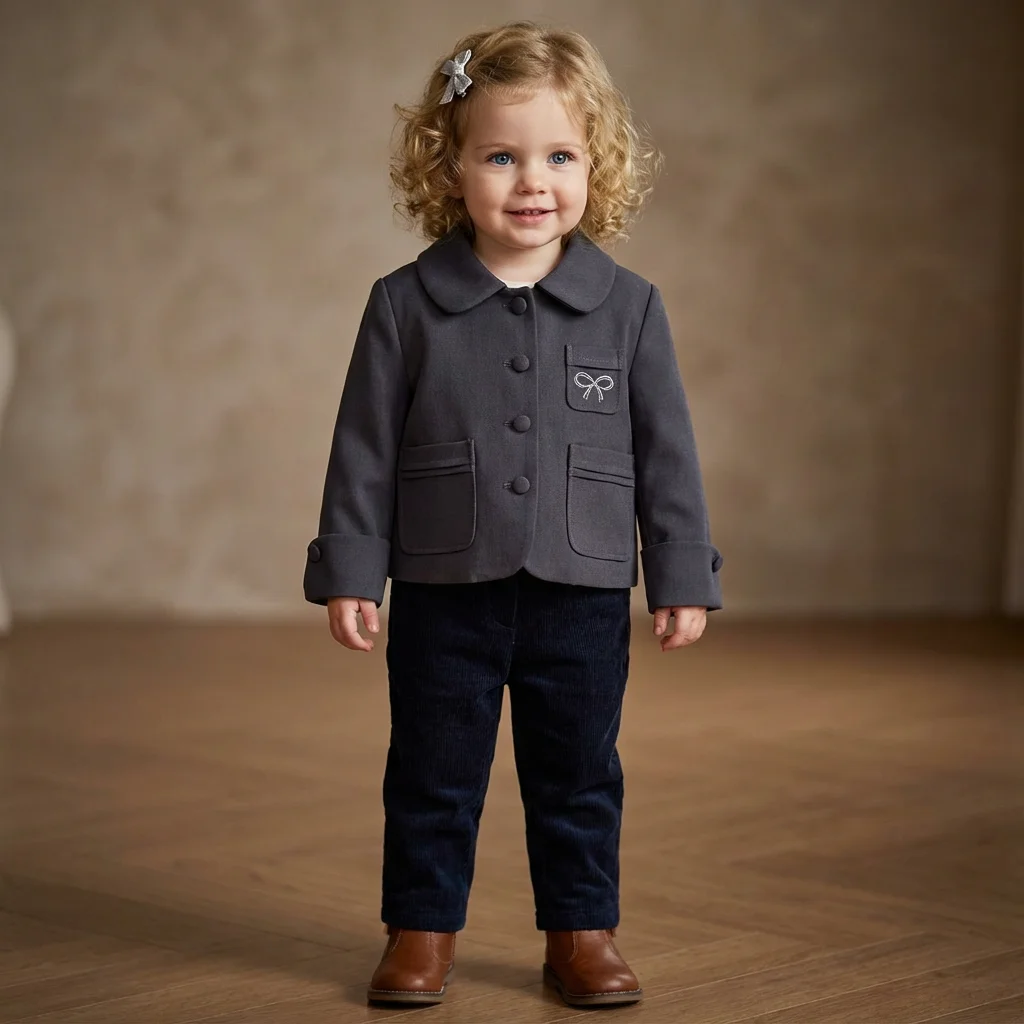SeasonSea Giacca blazer stile preppy per ragazze Primavera Autunno Cappotto uniforme scolastica per bambini Fiocco Colletto alla Peter Pan Capispalla formale per bambini