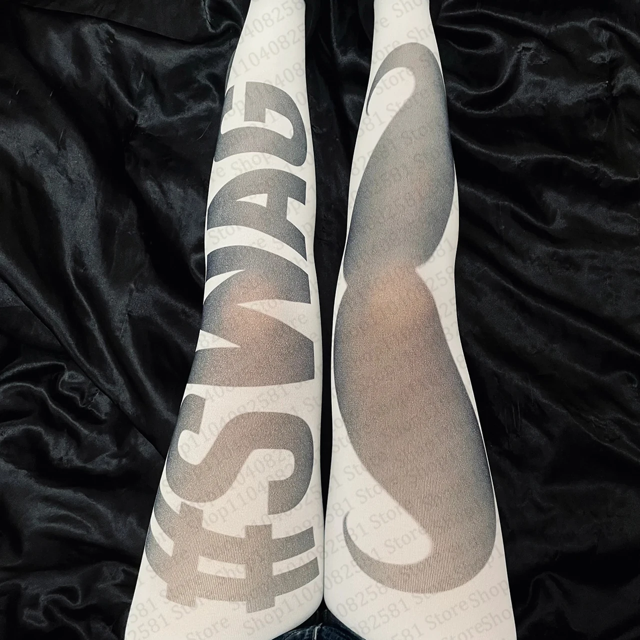 Calze a rete alla moda e chic con stampa stile Y2K, stile punk, bianche, alla moda, gotiche, loli, carine, casual, per ragazze emozionali, retrò