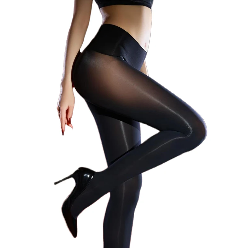 Collant Lucidi Effetto Olio Ultra Sottili Trasparenti Setosi Lisci, Collant Sexy da Donna con Apertura all'Inguine