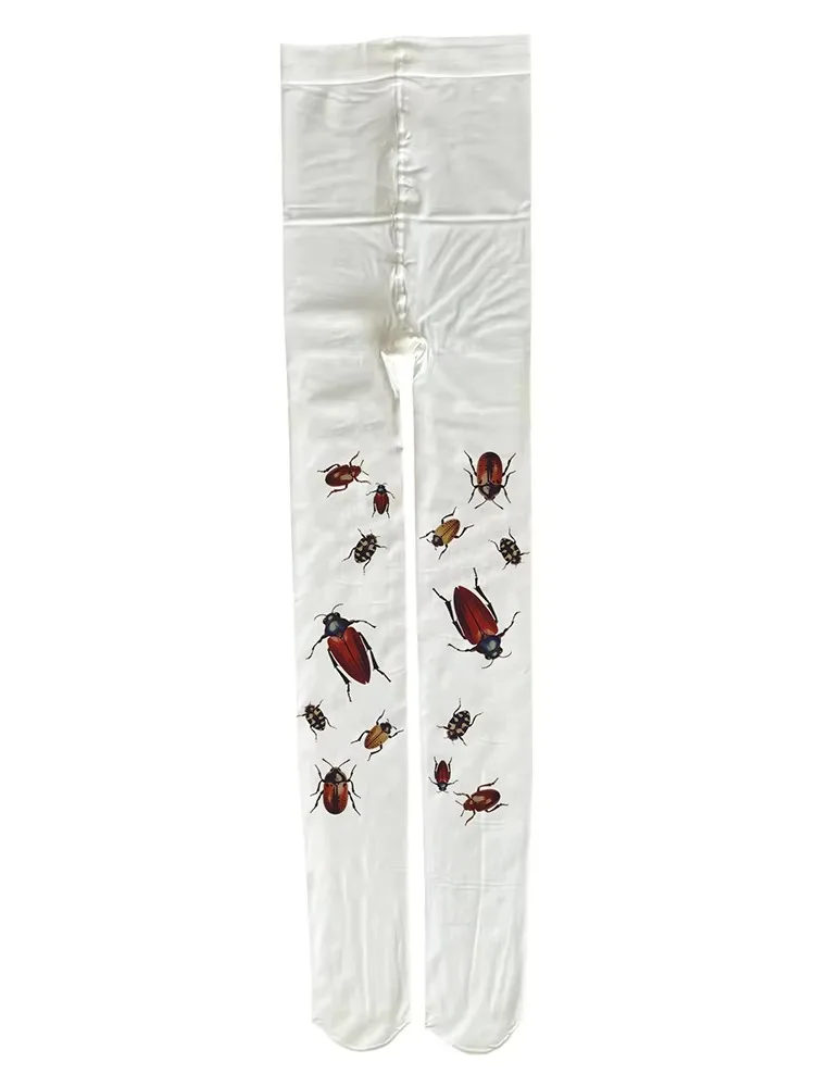 Collant da Donna Coreani Y2K, Calze in Seta Bianca con Motivo a Insetti Stampato, Versatili per Uso Quotidiano