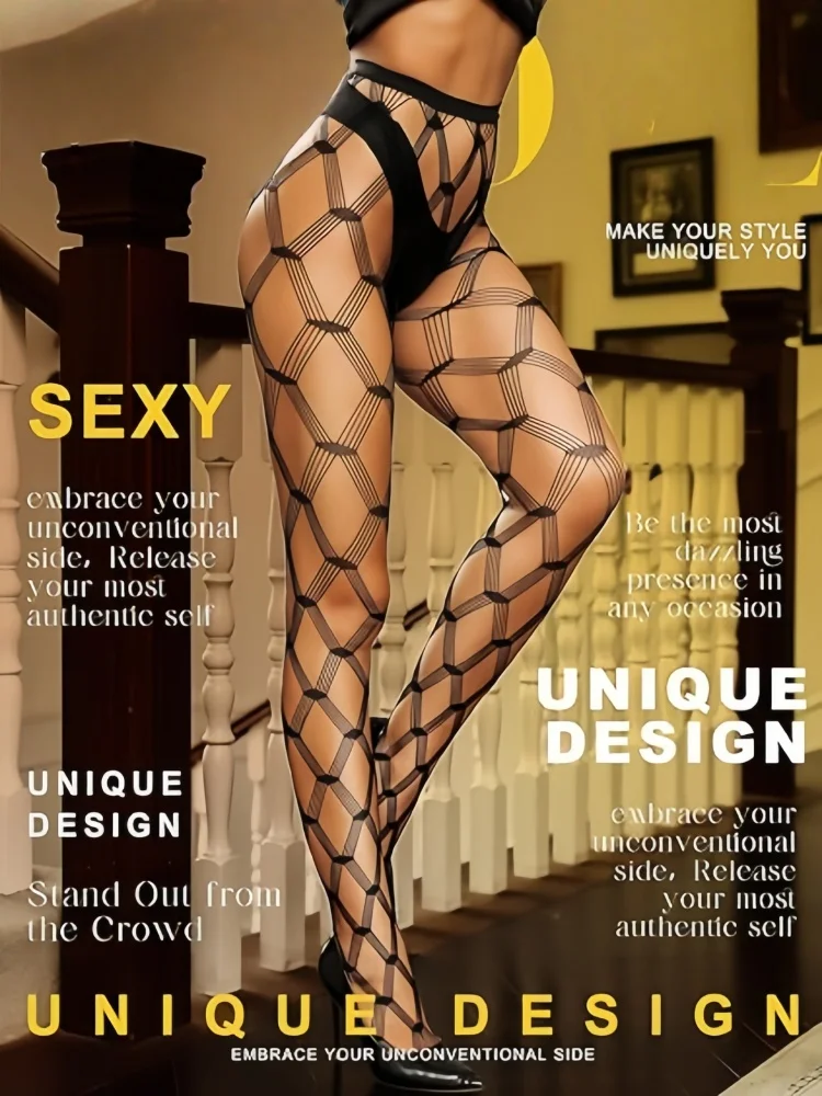 Collant a rete sexy a vita alta da donna, con fantasia, a gamba intera, taglia unica