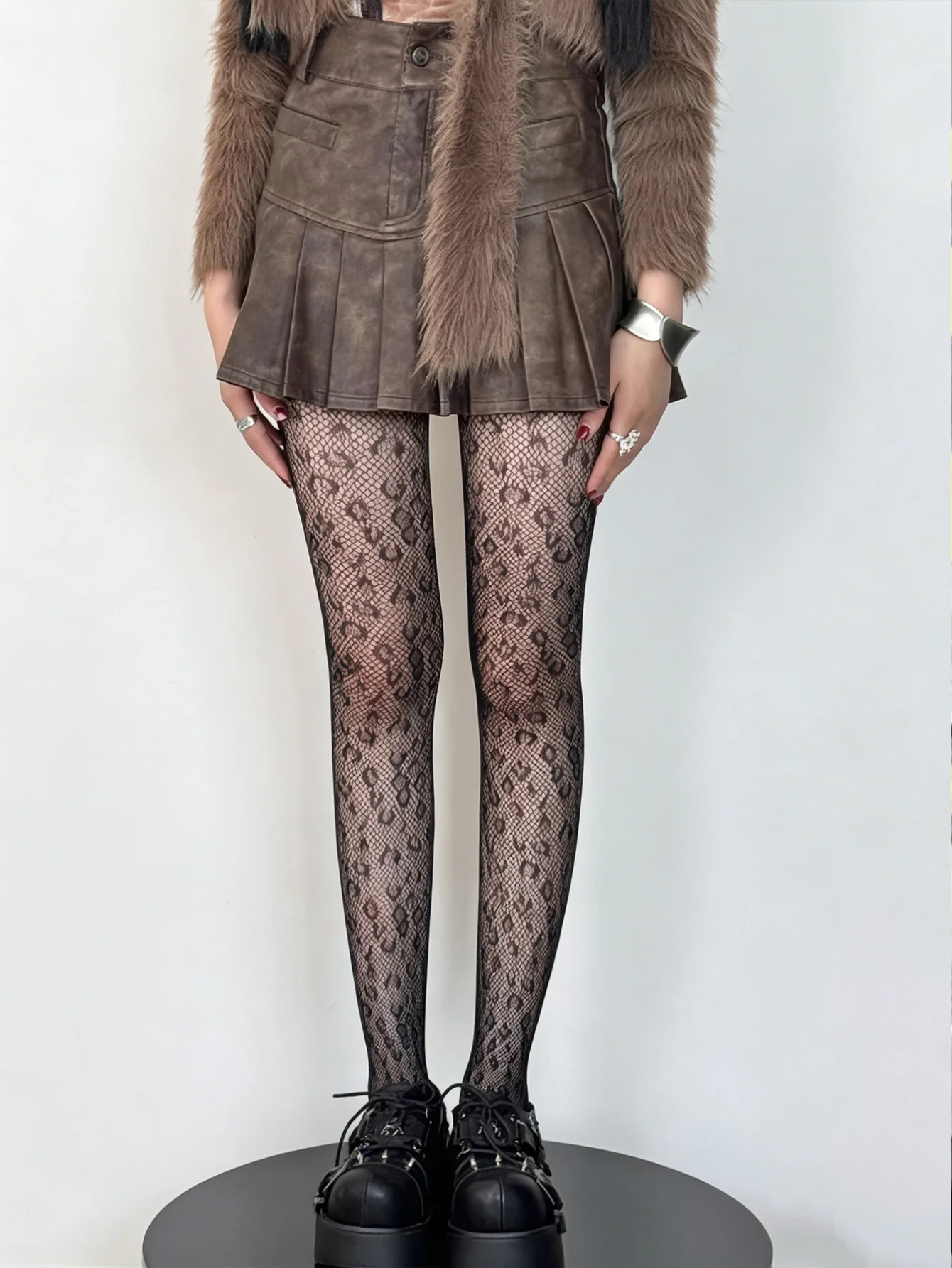 1 paio di collant a rete con stampa leopardata retrò, collant in rete morbida ed elasticizzata per abiti casual e romantici