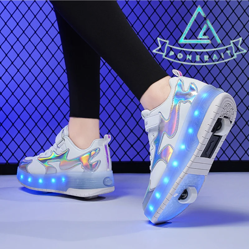 Scarpe da skate a rotelle a 2 ruote per bambini Scarpe da ragazzo alla moda con scarpe da ginnastica casual a doppio scopo retrattili a LED con ruote