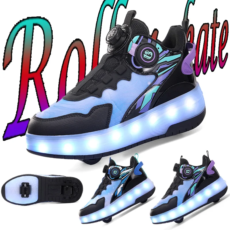 Scarpe da skate a rotelle a 2 ruote per bambini Scarpe da ragazza di tendenza con scarpe da ginnastica casual a doppio scopo per bambini retrattili a LED