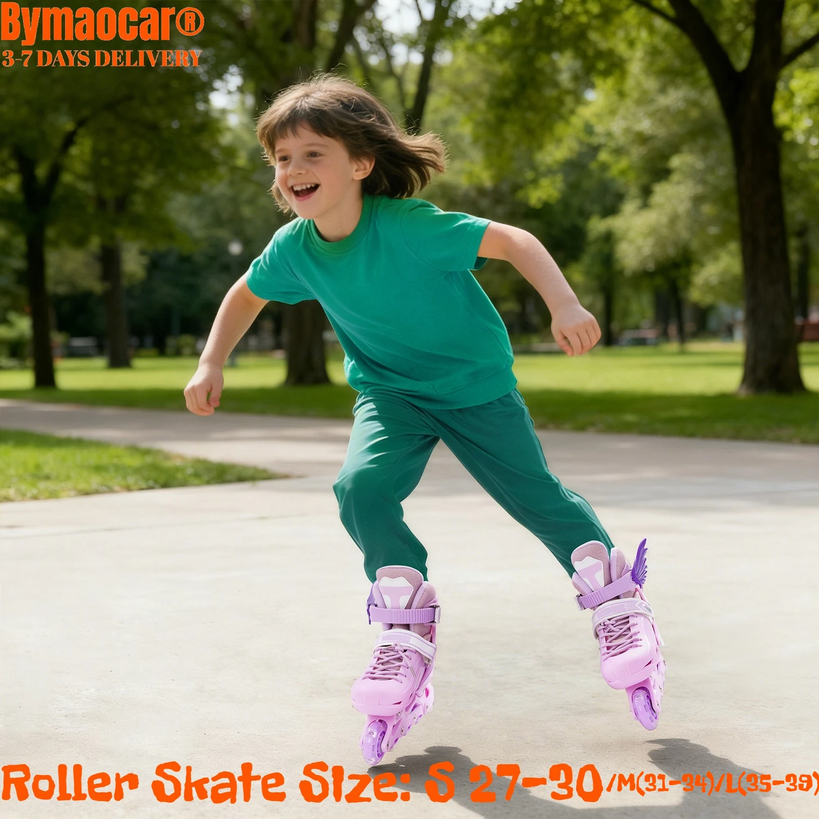 Pattini a rotelle regolabili in 4 misure per bambini, scarpe da pattinaggio in linea da esterno con ruote luminose, M(31-34)/L(35-39) per bambini e bambine