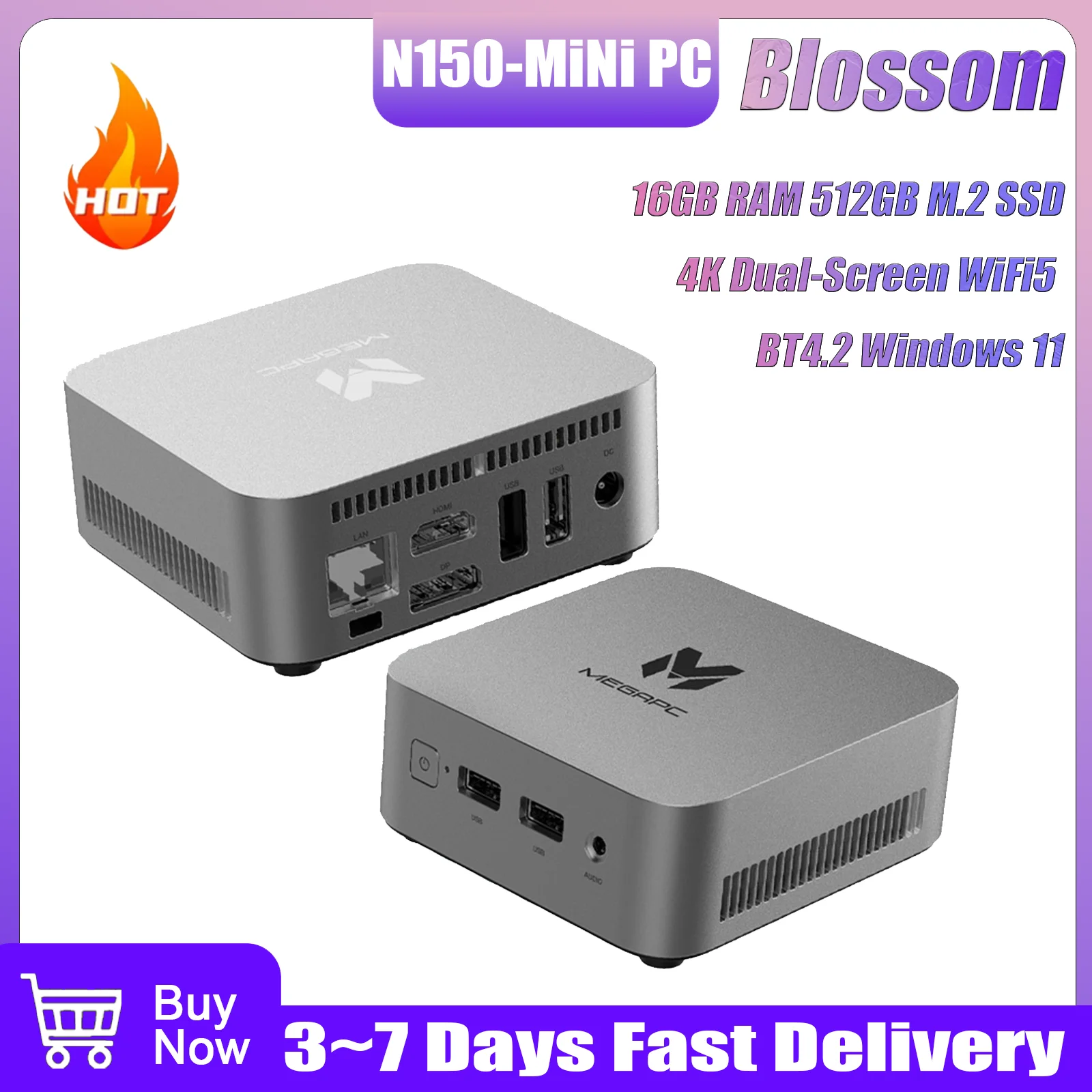 Blossom N150 A0JT Mini computer desktop Intel 16 GB RAM 512 GB M.2 SSD 4K Doppio schermo WiFi5 BT4.2 Windows 11