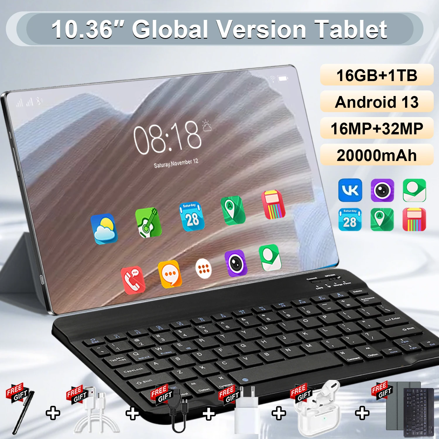Nuovo 2026 5G Versione Globale Tablet da 10.36 Pollici Android 13.0 16GB di RAM 1TB ROM Bluetooth WiFi Rete 12000mAh