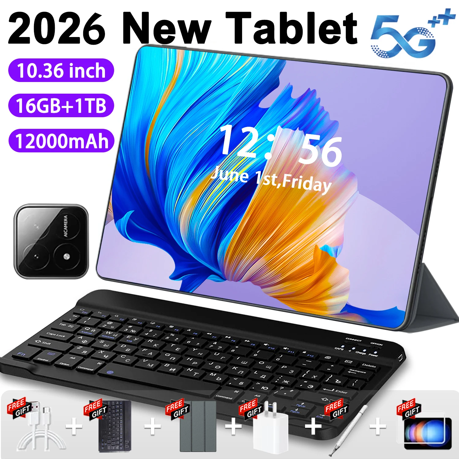 Tablet Originale 2026 da 10.36 Pollici, Android 13.0, 16GB RAM, 1TB ROM, 16MP 32MP, 20000mAh, 14 Core, 5G, Dual SIM, Bluetooth, WiFi, GPS, Versione Globale