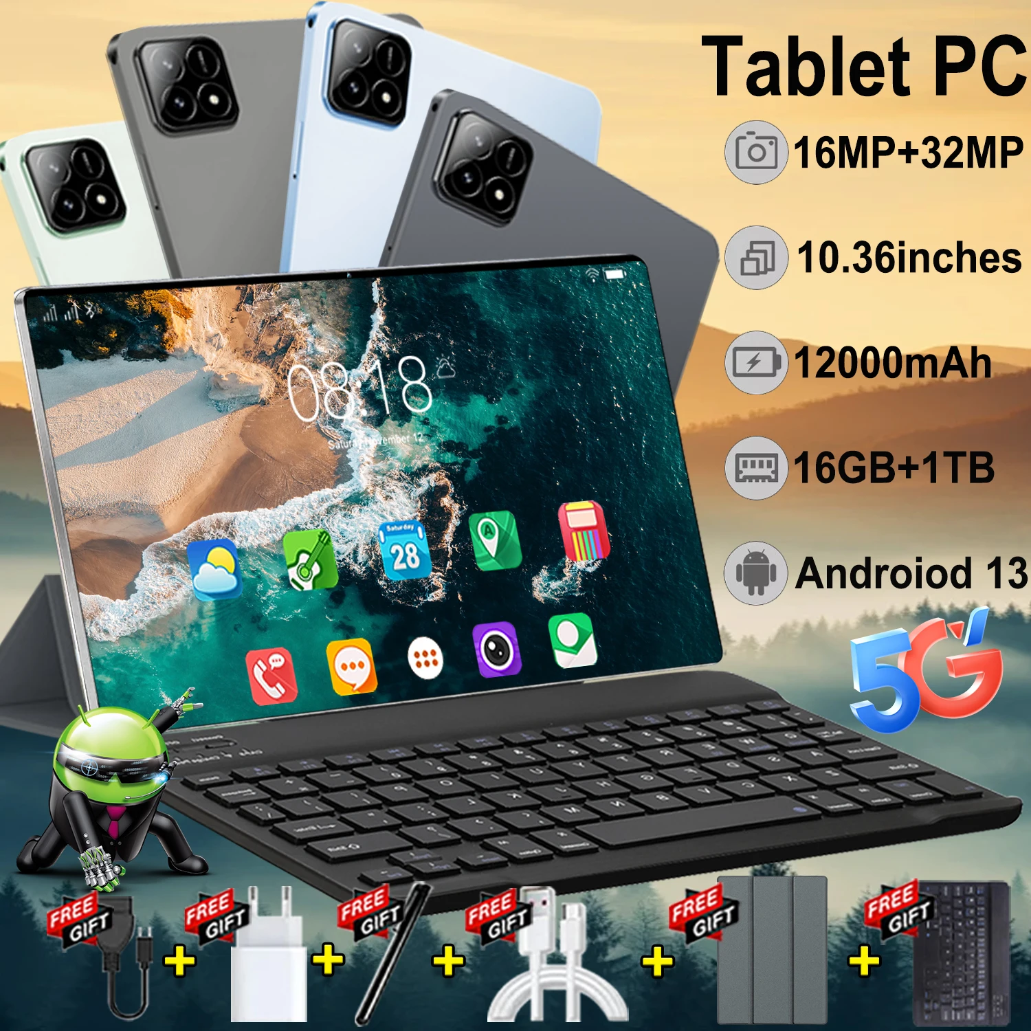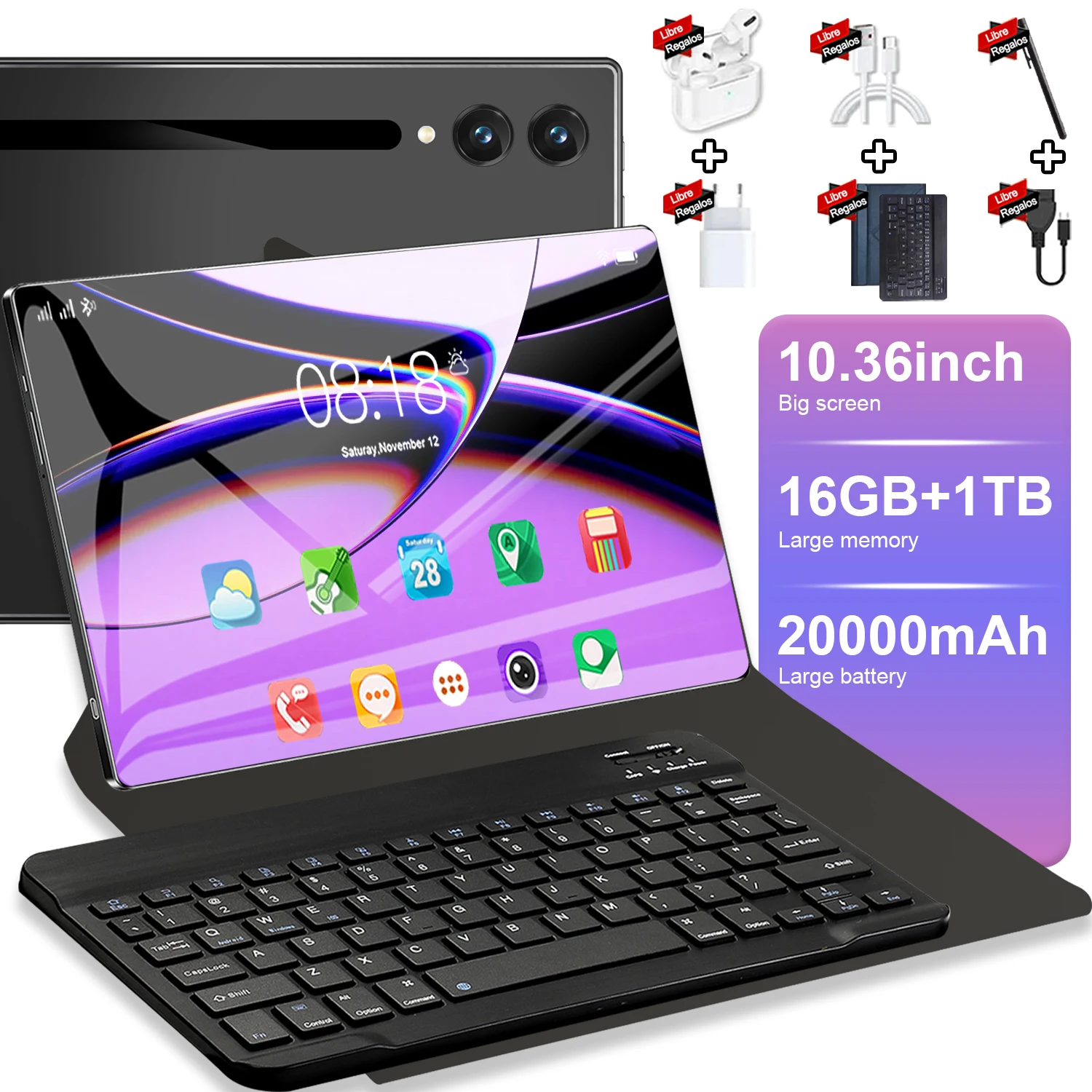 Tablet Android 10.36 Pollici Versione Globale 2026, 13/14 Core, 16GB RAM, 1TB ROM, 5G, Google Play, Doppia Fotocamera, Doppia SIM