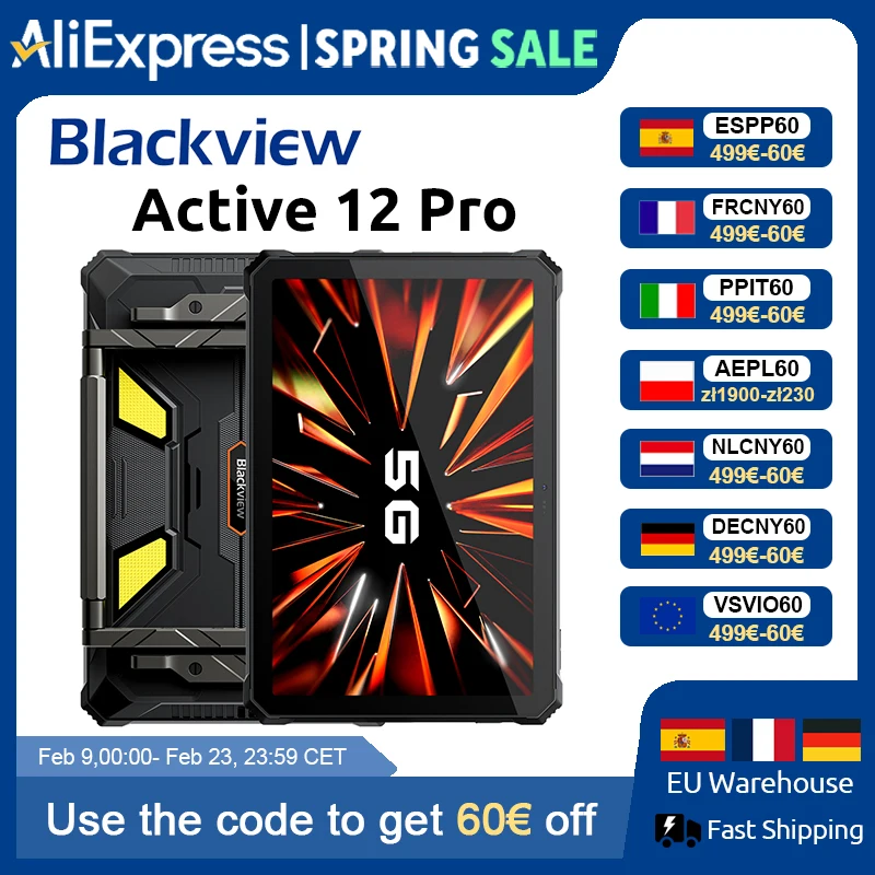 Blackview Active 12 Pro Tablet robuste 5G Android 15, display FHD+ da 11", 12 GB+256 GB/16 GB+1 TB, batteria da 30000 mAh Fotocamera da 108 MP