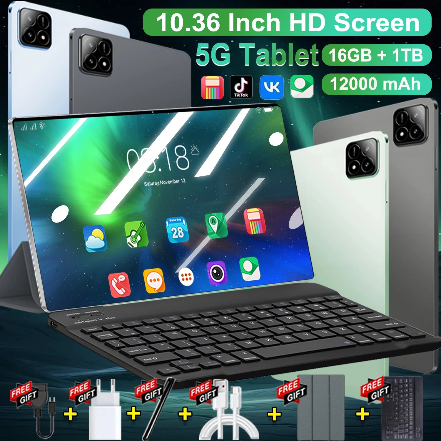 Tablet Android Versione Globale 2026 5G Nuovo di Zecca 16GB RAM 1TB ROM Android 13.0 10-Core mAh Tablet PC con WiFi