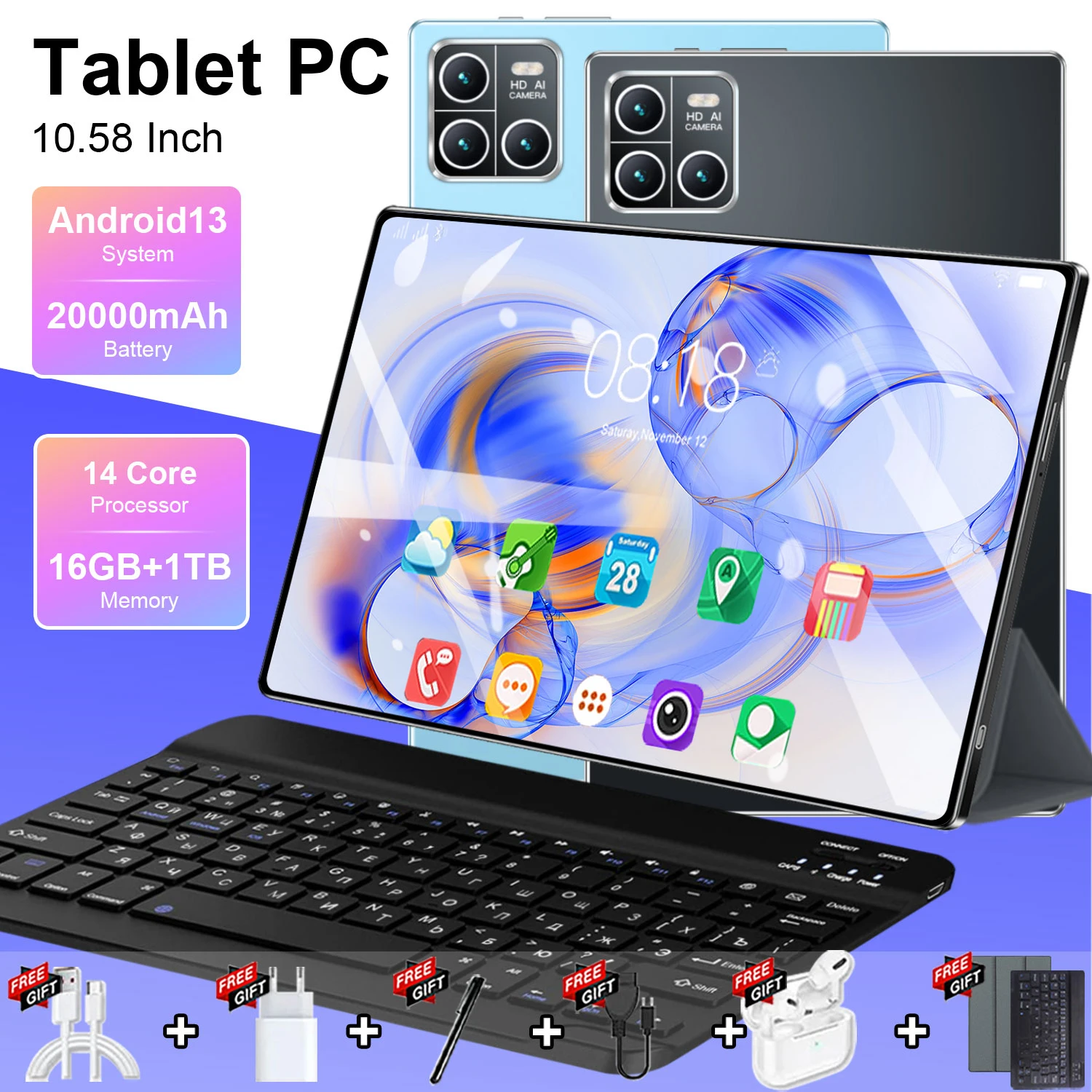 Tablet Android 13 da 10,58 pollici Google Play 14 Core Doppia fotocamera SIM 5G Tablet PC Bluetooth 16 GB + 1 TB ROM