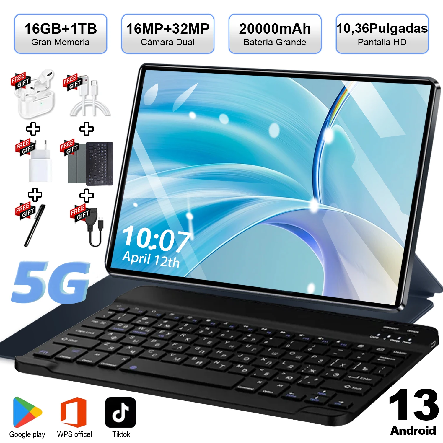 Tablet Android 10 Core da 10,36 pollici 16MP + 32MP 16GB + 1TB 12000mAh Nuovo tablet da gioco 5G WIFI Bluetooth GPS Dual SIM