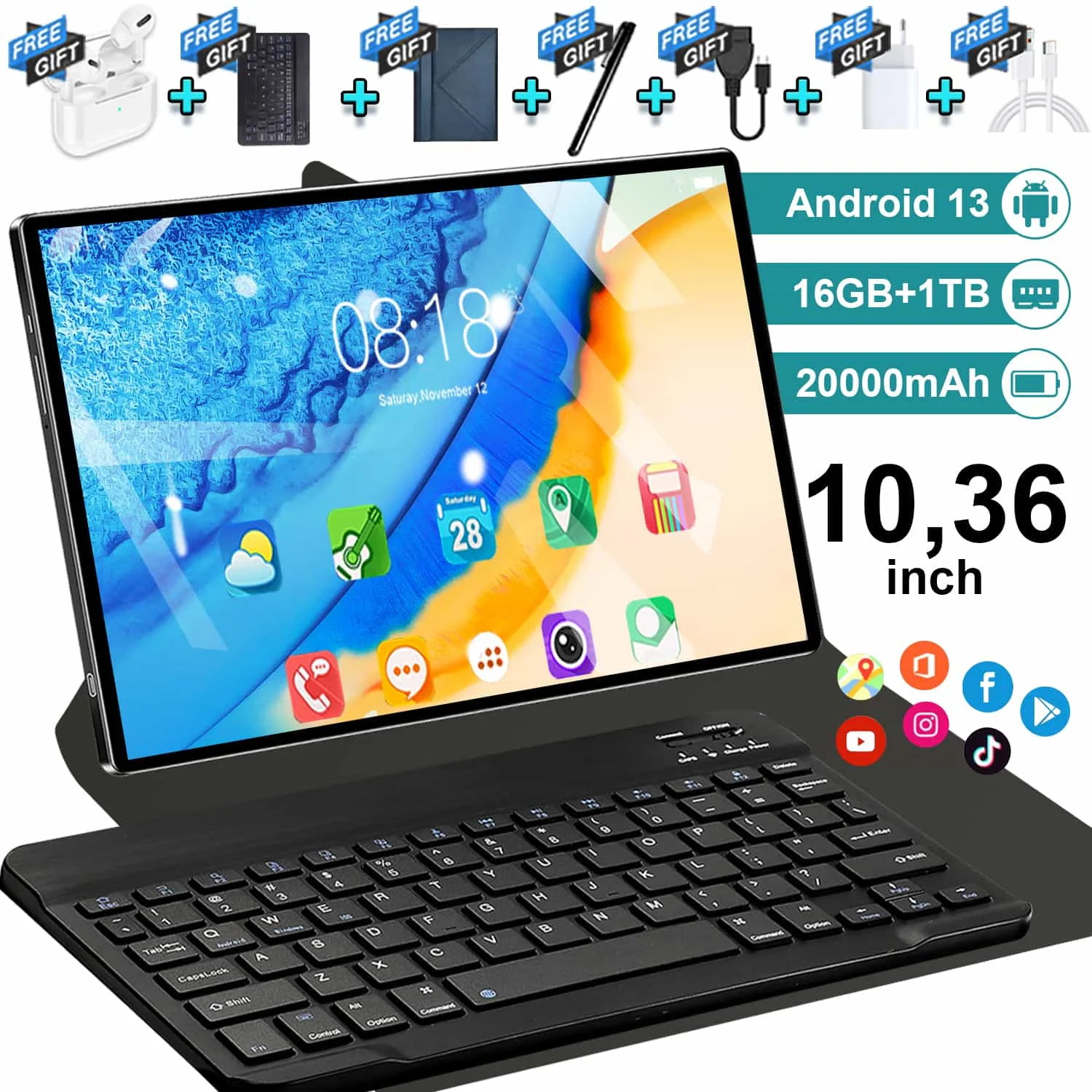 Nuovo Tablet Originale 2026 da 10.36 Pollici, Android 13.0, 16GB RAM, 1TB ROM, Dual SIM, 14 Core, 20000mAh, Bluetooth, WIFI, Rete 5G
