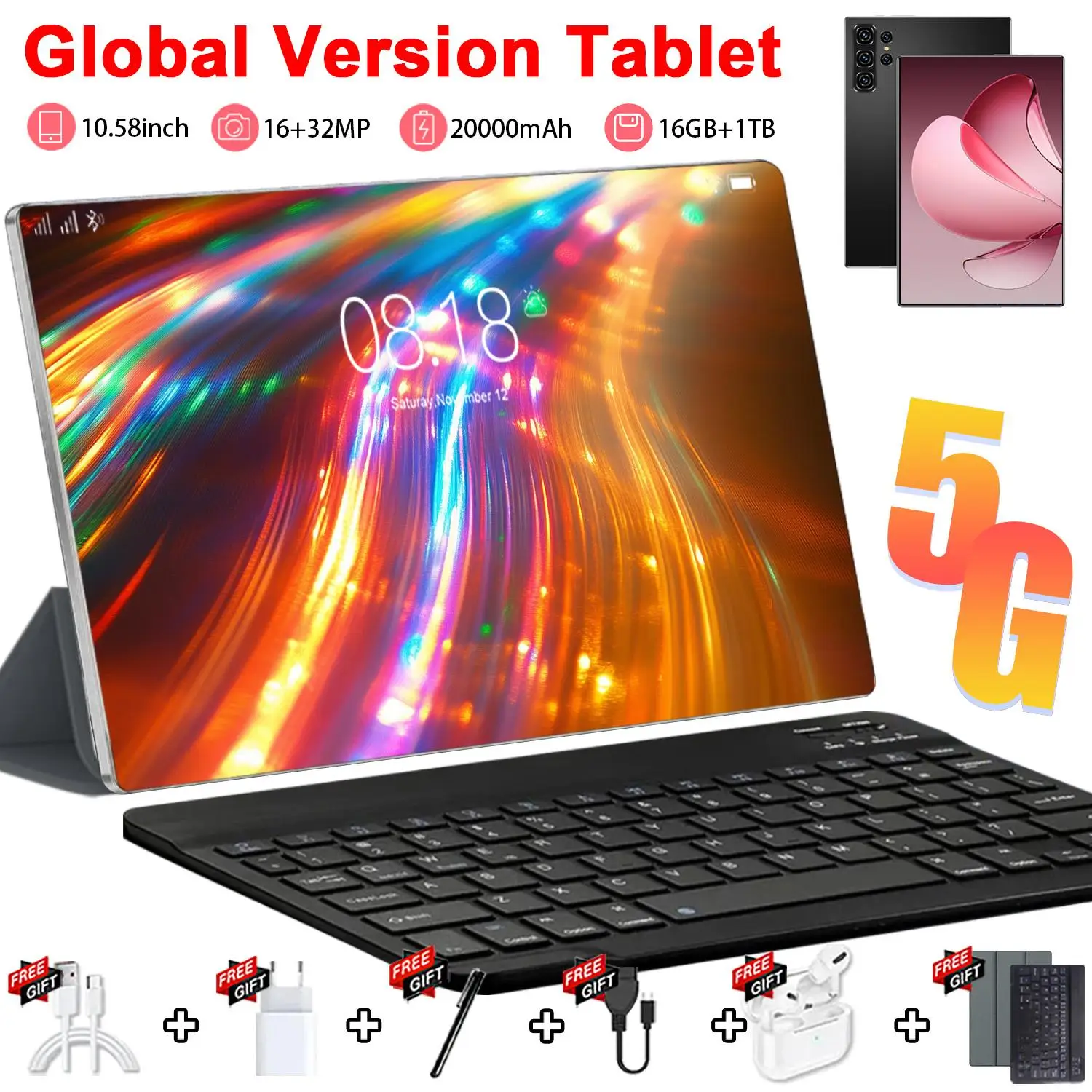 Tablet Android 5G Nuovo di Zecca da 10.36 Pollici, 16GB RAM, 1TB ROM, Batteria 20000mAh, Android 13.0 Versione Globale, Schermo HD, 14 Core, PC Tablet WIFI