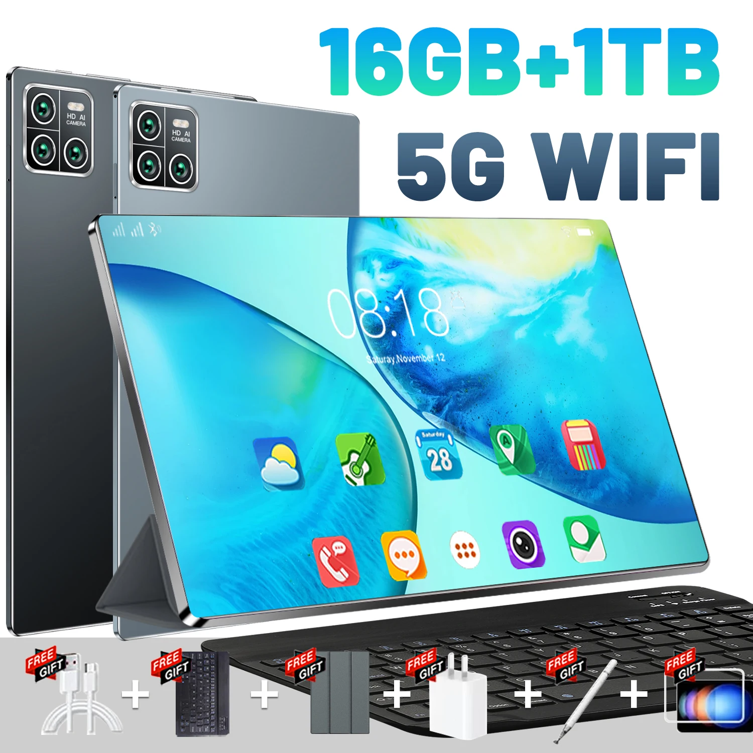 Tablet Android Versione Globale 2026 5G Nuovo di Zecca 16GB RAM 1TB ROM Android 13.0 10-Core mAh Tablet PC con WiFi
