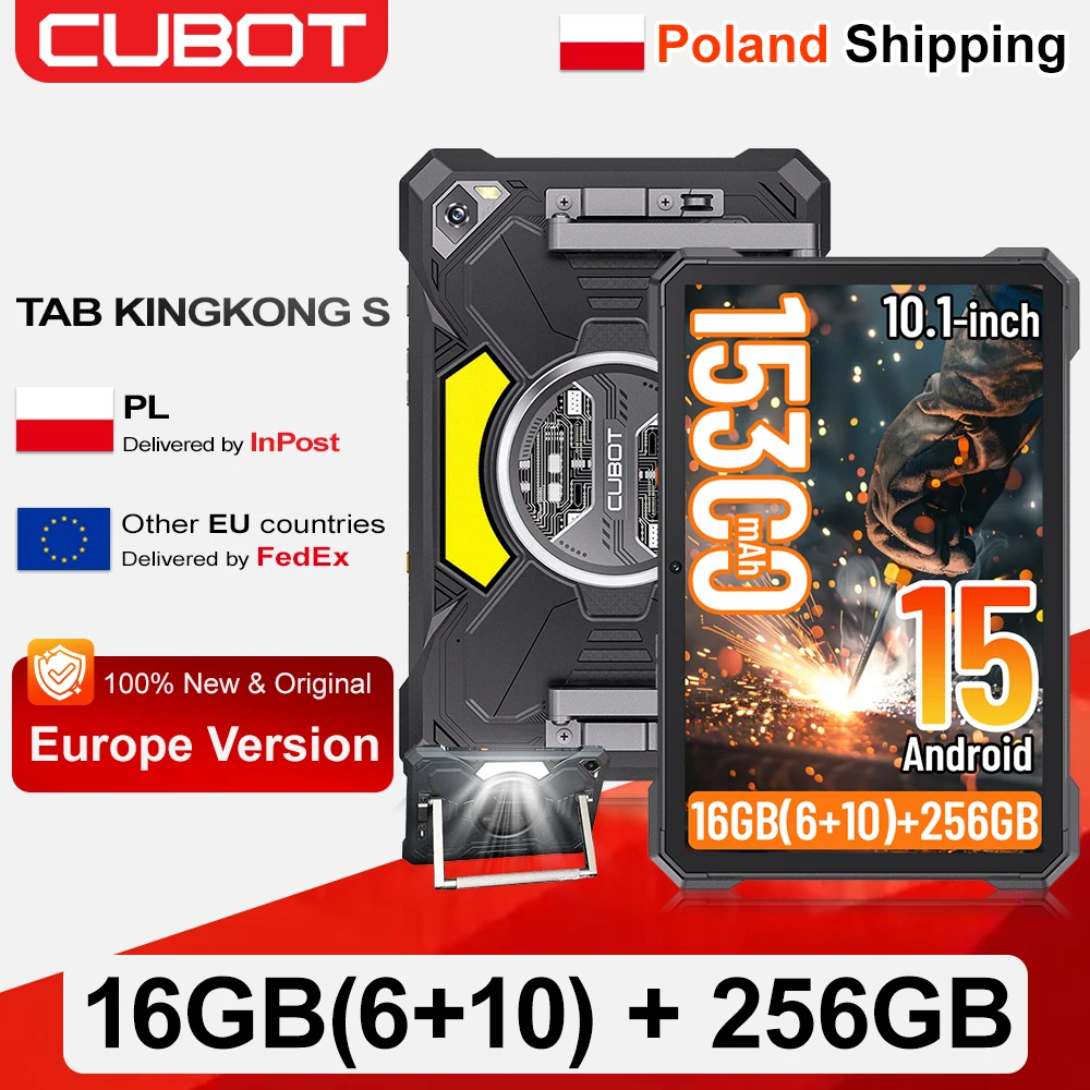 [Spedizione dalla Polonia] Tablet Cubot TAB KingKong S 10.1'' 90Hz Android 15, 15300mAh, 16GB(6+10) 256GB, Luce da Campeggio, Fotocamera 48MP