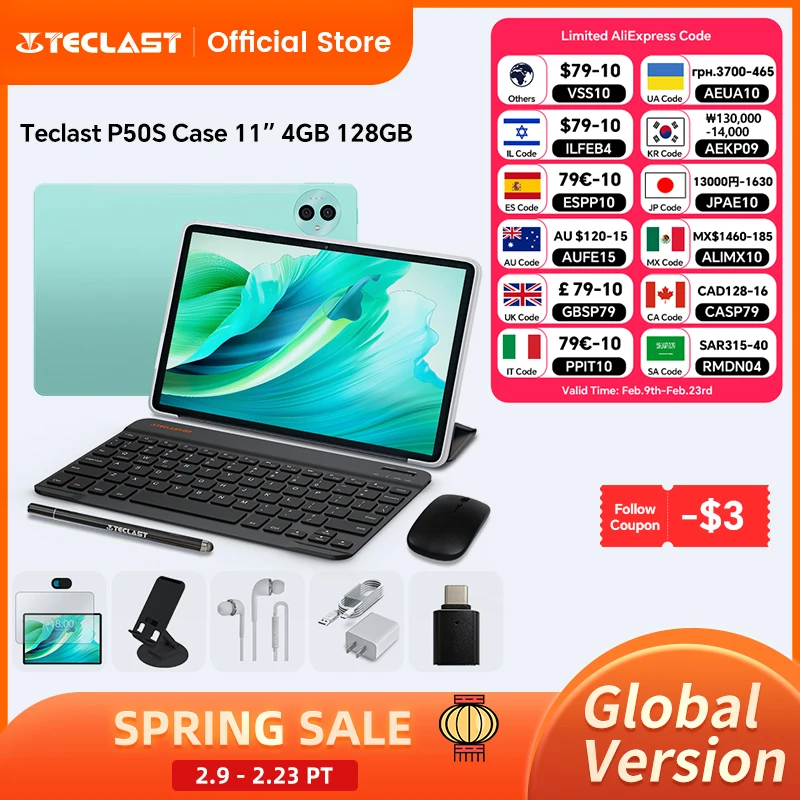 Teclast P50S Custodia Tablet Display da 11 pollici Unisoc T606 8-Core Max 10 GB RAM 128 GB ROM 8000 mAh Batteria Android 14 Wifi Unibdy in metallo
