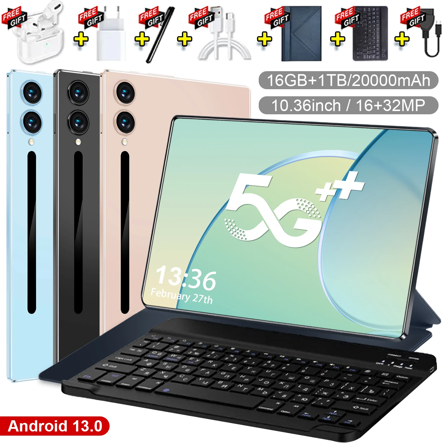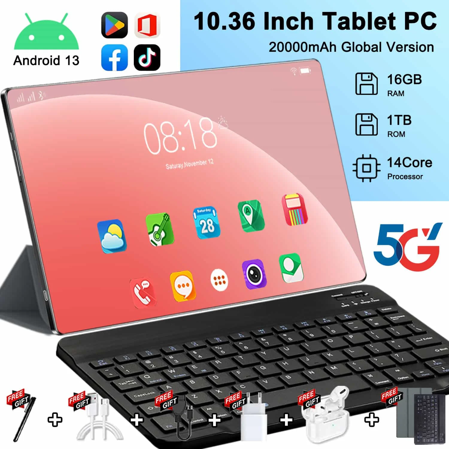 Tablet 5G Originale da 10,36 Pollici, 16GB RAM, 1TB ROM, 20000mAh, Android 13, Bluetooth, 14 Core, WIFI, GPS, HD con Tastiera