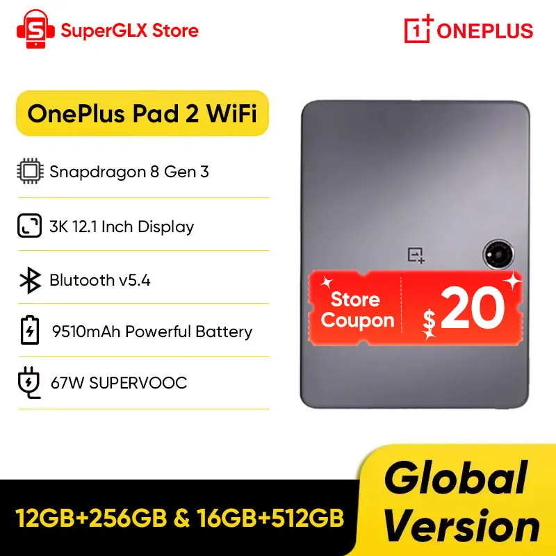 Versione globale OnePlus Pad 2 Display da 12,1" 144Hz Tablet Android Snapdragon 8 Gen 3 Processore 9510mAh Batteria OxygenOS 14.1