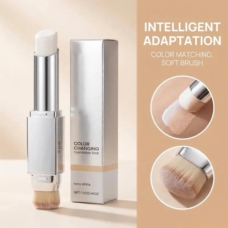 Fondotinta in stick bicolore che cambia colore, bianco avorio, texture leggera e sottile, idratante, opaco