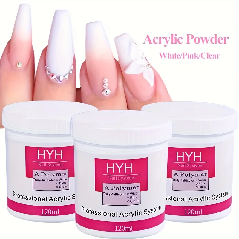 Polvere per unghie acrilica 120ML 4,23 OZ Polvere acrilica rosa trasparente e bianca Senza odori Senza bolle No bisogno di lampada per unghie Acrilico a lunga durata
