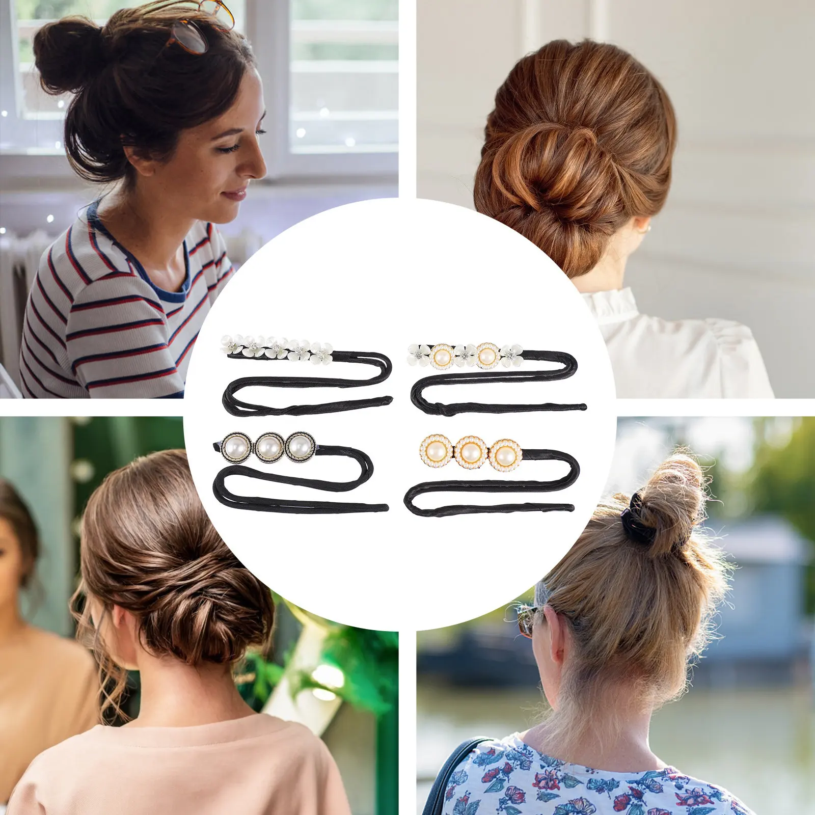 Set di 4 Attrezzi per Acconciature Eleganti con Perle, Dispositivo Anti-Scivolo per Creare Chignon, Ideale per Matrimoni e Lavoro