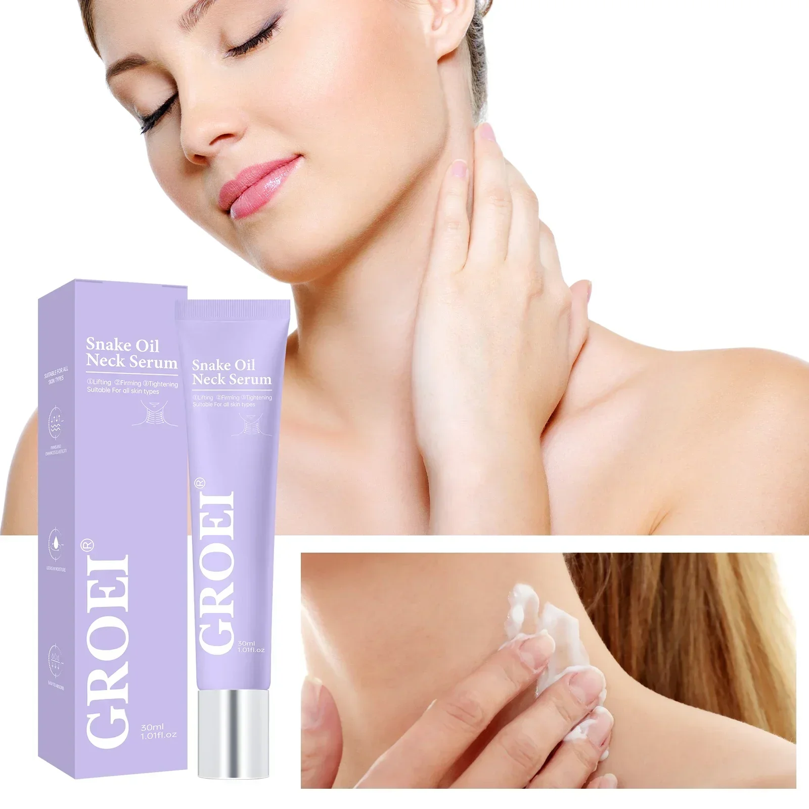 3x Siero per il collo all'olio di serpente 90ml Crema idratante rassodante antirughe per la cura del collo Migliora la pelle cadente Cerchi scuri Doppio mento