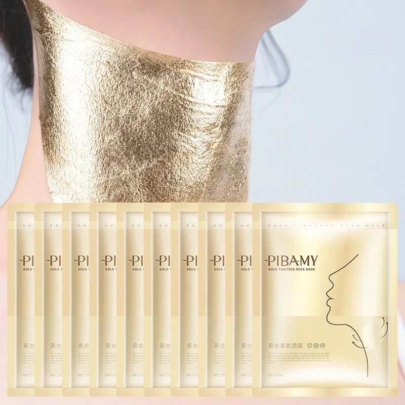 Maschera rassodante per il collo Gold Firming, idratante, antirughe, anti-età, per la cura della pelle del collo, prodotti di bellezza per la cura della pelle del collo, 10 pezzi
