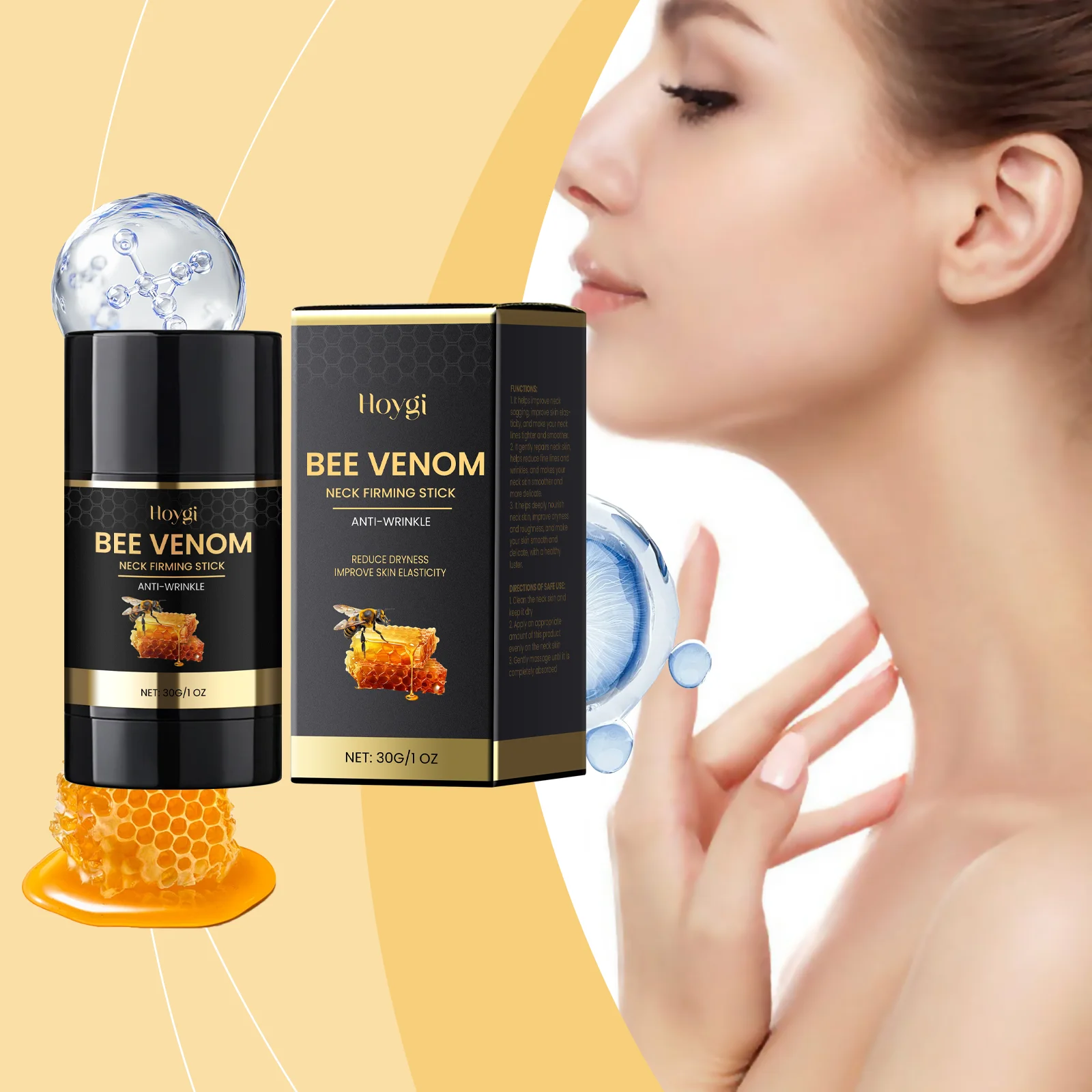Bastone rassodante per il collo al veleno d'api Idratazione profonda e nutriente Crema per il sollevamento del collo Ripara i danni alla pelle Rafforza la barriera cutanea Cura della pelle