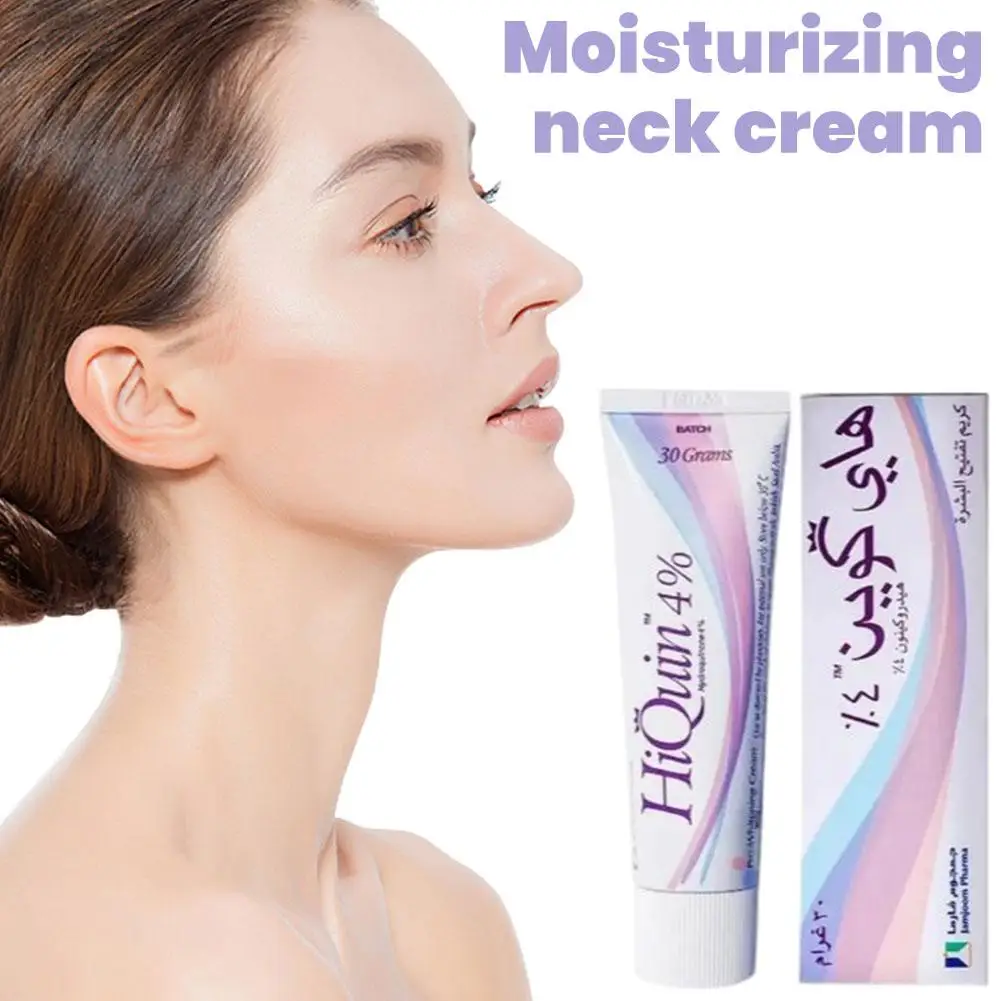 HiQuin Crema Antirughe per il Collo 4% 30g, Riduce Melasma e Macchie dell'Età, Sbiancante, Antiossidante, Idratante, Cura della Pelle del Collo