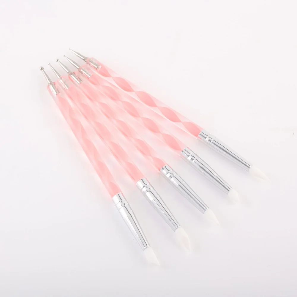 Set di 5 Penne per Nail Art in Silicone a 2 Punte, Strumenti in Acciaio Inox per Decorazione Unghie, Penne per Marmorizzazione e Pittura