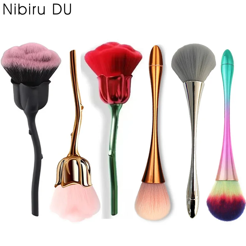 2 pennelli per unghie a forma di rosa, con manico lungo e sottile, per nail art, per la rimozione della polvere, pennelli professionali per nail art e make-up.